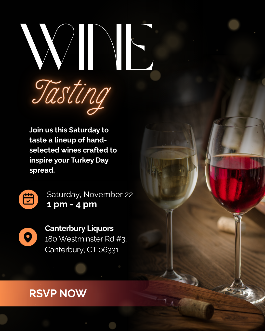 Canterbury Liquors 180 Westminster Rd #3, CanterburyJoin us this Saturday for a free tasting of hand-selected wines chosen with Thanksgiving in mind. Whether you’re planning a full Turkey Day feast, searching for the perfect bottle to […]
